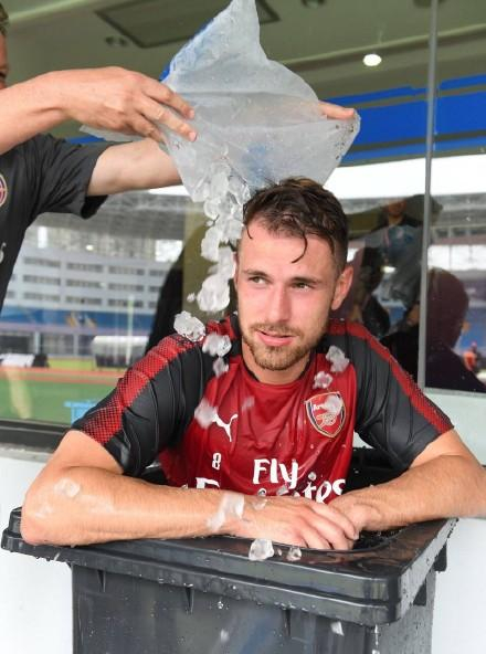 阿森纳球员在“垃圾桶”中享用冰爽。