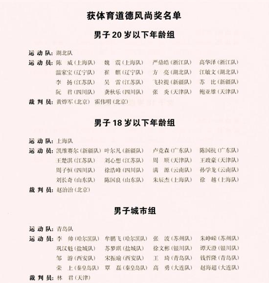 5支球队近80名球员荣获全运会体育道德风尚奖