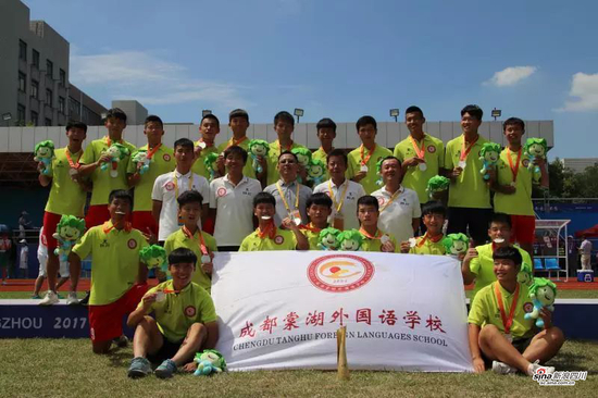 在年初举行的2018“荣耀天府”成都市足球颁奖晚会上,棠外荣获2017-2018成都市T联赛高中组冠军、2018成都市足球锦标赛U17冠军、棠外小学部被评为成都市青少年校园足球“后备人才输送学校”、高中足球班蹇韬、孟俊杰、徐逢,吴宇曦,袁晨晖等人荣获希望之星称号多项大奖。值得一提的是,晚会在今年还特别增设“终身贡献奖”,棠外老校长黄光成校长为成都足球、中国足球默默奉献一生,获颁此项重量级大奖。