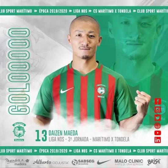 在马里迪莫,前田大然也是从替补干起,本赛季葡超前两轮,他全部是替补出战。然而由于特点过于突出,替补出战又表现不错,从第三轮对阵通德拉开始,他就开始担任球队的主力右边锋。而也正是在那场比赛中,他打入了个人在葡超的第一个进球,就此锁定主力。截止上周末,他已经连续4场首发,打入2球,这对于一个来自亚洲国家、首次留洋欧洲、身材矮小却速度出众的边锋来说,已经是不错的成绩。葡萄牙媒体也是十分惊叹前田的速度,《ABOLA》认为他是一位“高速且无畏”的球员,他的惊人速度永远威胁着对手。