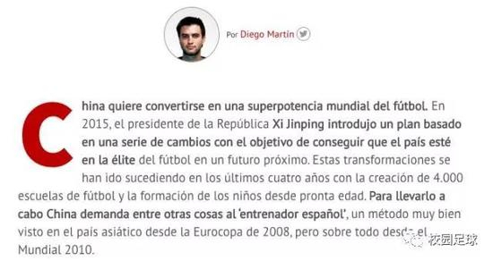 近日,西班牙知名体育媒体《阿斯报》,发布了一篇关于中国足球青训的报道,在报道中,这家西班牙媒体援引了一名目前在中国贵州小学支教的西班牙青训教练凯文•维达尼亚的一番言论,凯文•维达尼亚表示,中国孩子并不缺足球天赋,但没钱踢不上职业足球。