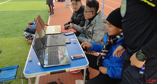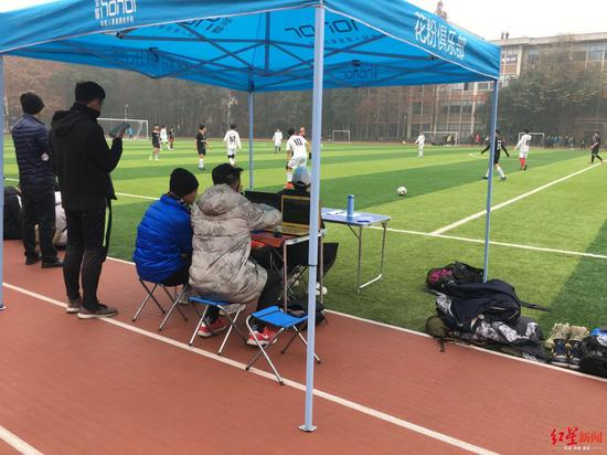 尽管设备简陋,但刘一繁和他的同学们尽心尽力的去完善,为了有一个自上而下的大视角,以便能够更好地做出判断,在没有航拍工具的情况下,他们将其中一个机位设置在球场边的教学楼顶,两位负责的同学在寒风中站了整整一场比赛,同时还客串了直播的解说员工作。此外,据刘一繁介绍,场下的三名视频助理裁判助理,都是有国家三级足球裁判资质,而且多次担任过比赛主裁判,有比较丰富的裁判知识和经验,因此能够更加快速和准确地做出判断。