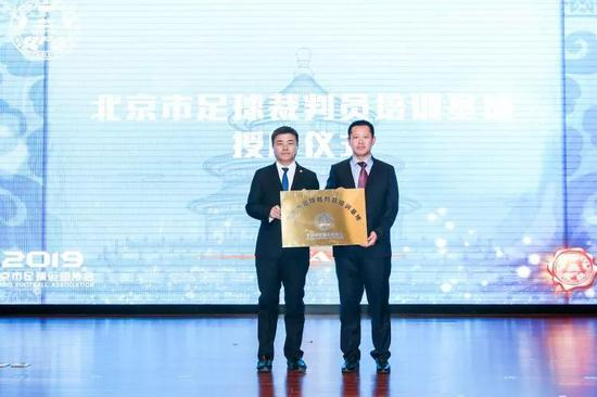 北京市足协常务副主席兼秘书长、裁委会主任刘军为首都体育学院体育教育训练学院授牌成为北京市足球裁判培训基地