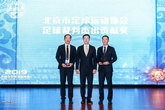中国足协裁判管理部段明洋为黄烨军、霍伟明颁发杰出贡献奖