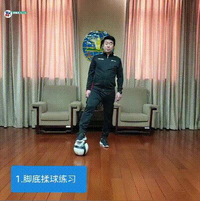 5。 脚背正面推拨球+脚底踩拉球组合练习