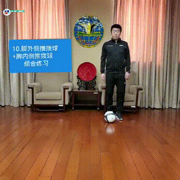 10。 脚外侧推拨球+脚内侧推拨球组合练习