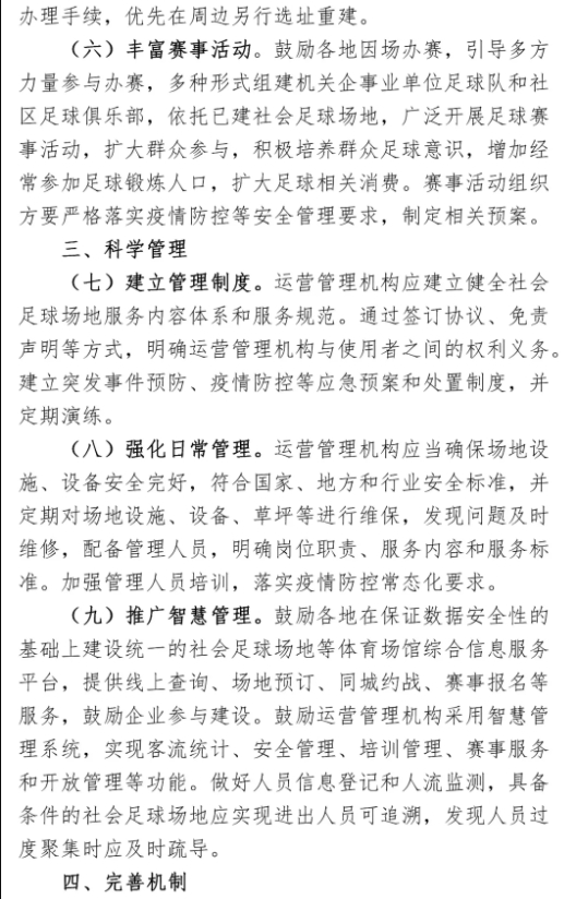 附《关于加强社会足球场地对外开放和运营管理的指导意见》全文截屏: