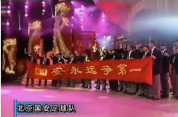1996年的春晚现场,中国足球是以正面形象出现的,姜昆和戴志诚说起北京国安队连续在友谊赛里赢下欧洲和南美球队:“AC米兰、阿森纳、佩纳罗尔、桑普多利亚、弗拉门戈,我们中国全赢啦!”这是把北京队的输赢上升到了国家输赢的高度。