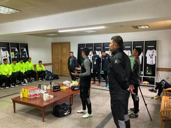 赛后,亲自来到现场观战的新疆体育局足管中心书记刘涛来到球队当中,转达了新疆体育局聂春书记、伊明江局长和局党组对球队全体教练员和运动员的问候与祝贺。刘书记首先肯定了球队在比赛中的表现,打出了新疆球队的精神,希望在接下来的比赛中继续发扬新疆足球团结拼搏的精神,再接再厉、勇于拼搏,拿下小组赛最后一轮,以优异的成绩,取得晋级全运会决赛圈。