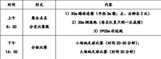 其中,足球的考试内容分为五项:颠球(男生10次,女生5次)、绕杆跑、传接球、运球绕杆和射门。