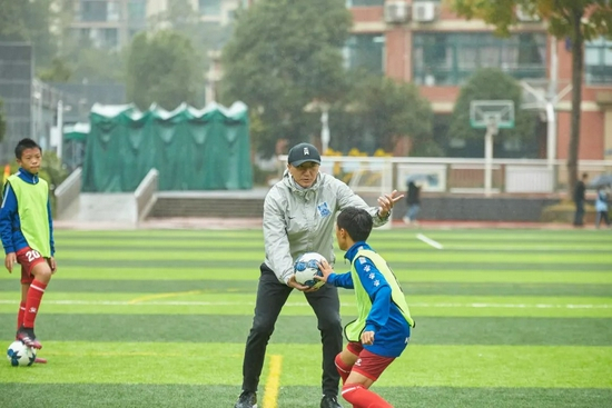 李老师对刘成说,他的身体很好,能跑得动。于是每周李老师来两次,到几所学校去看看低年级的小朋友,从选材方面进行把关。李老师还设计了孩子们踢校园足球的基础方案。“李老师把他多年在校园足球里的经验和我的训练内容,传授给这些年轻的教练员。在重大比赛中,会给我们的教练提供一些现场把控方面的建议。”