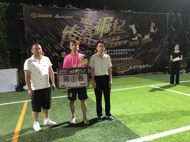 北京时间2020年8月28日晚,2020足金联赛安徽省级赛燃力士“奥园杯”芜湖站在芜湖奥体中心迎来决赛,最终2019赛季足金联赛芜湖站冠军安徽华创足球队以2-1险胜芜湖光金足球队,获得本次赛事的冠军。芜湖市足协主席刘荣宝,安徽奥园体育产业集团总经理曹仙龙,党支部书记张锐,安徽奋斗红文化传媒有限公司总经理张俊现场观战,并且为本站比赛的前三名颁奖。