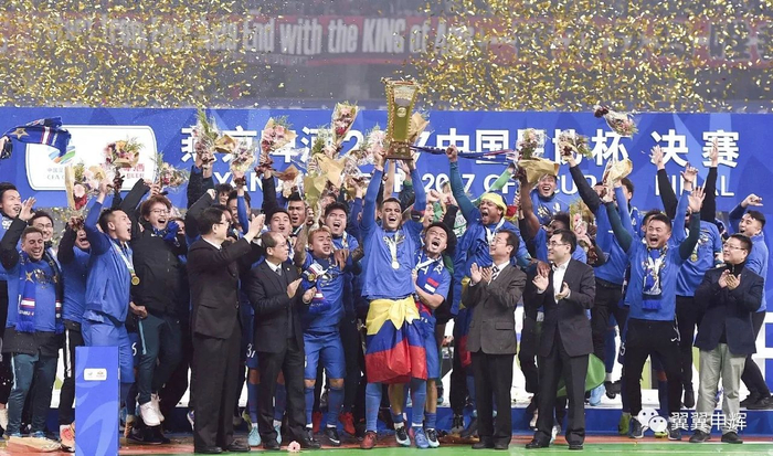 捧起中国足协杯冠军金杯