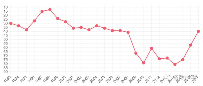 摩洛哥近年FIFA排名走势图(截图自FIFA官网)