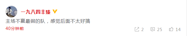 南方都市报丰臻:主场不嬴最弱的队,感觉后面不太好搞 。