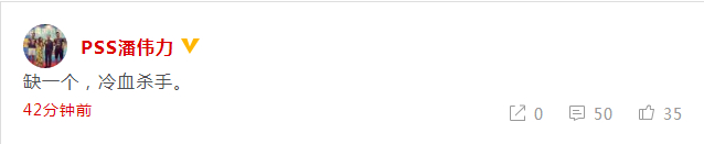 体育媒体人潘伟力:缺一个,冷血杀手。