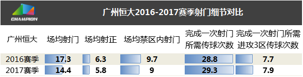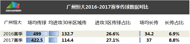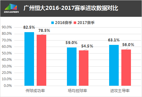 但是在2017赛季,恒大的传球成功率、控球率和进攻主导率全部下降,控制能力明显下滑。