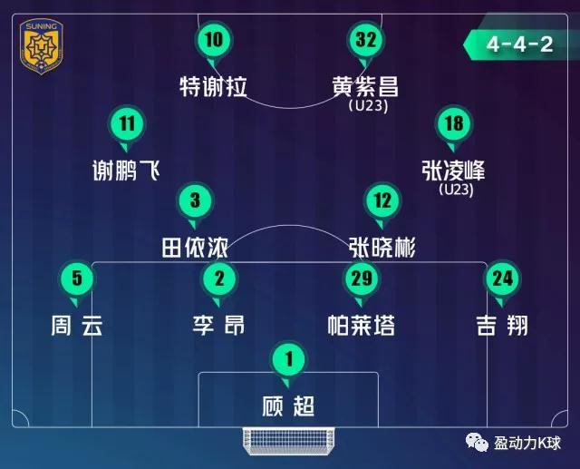 本场比赛首发阵容方面,江苏苏宁易购延续了双外援首发,博阿基耶坐在替补席随时待命。U23球员方面,张凌峰再次首发登场出任右边前卫,之前表现不俗的黄紫昌与特谢拉搭档锋线双前锋,球队延续了卡佩罗执教时期的4-4-2阵型。结合比赛来看,黄紫昌虽然在多在锋线能够给与特谢拉一定的帮助,但门前把握机会能力还稍显不足,错失多次破门良机。中场方面,球队双后腰田依浓和张晓彬在防守端表现的较为出色,但是在组织进攻和控球方面还有所欠缺,导致球队长时间无法通过中场发动进攻,多数为后场长传直接寻找特谢拉,但特谢拉更多的依靠突破完成进攻,效率不高。下半场比赛,球队换上博阿基耶,进攻端强度明显提高,球队通过博阿基耶的支点能力吸引防守,从而彻底解放特谢拉,博阿基耶的登场成为了改变比赛走势的关键。