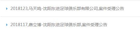 此外,足协仲裁委员还受理了唐立博、马天鸣、郭子豪、黄荻、陈曾太郎、刘伟与沈阳东进俱乐部的纠纷。