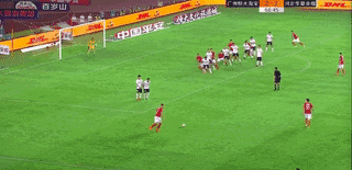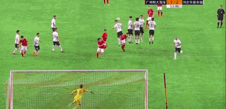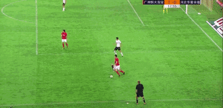 第51分钟,广州恒大获得前场任意球机会,古德利主罚直接射门,皮球被杨程扑出。