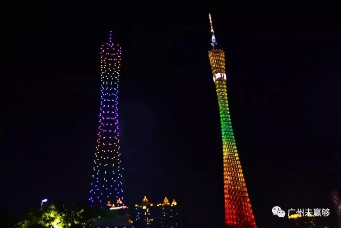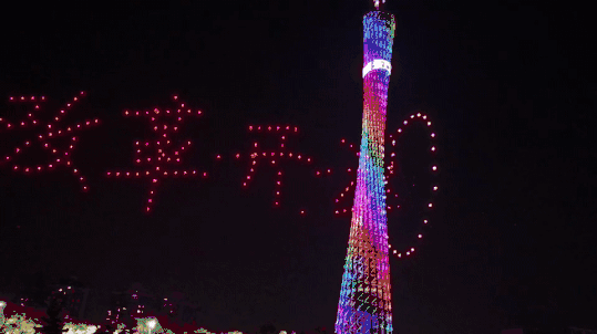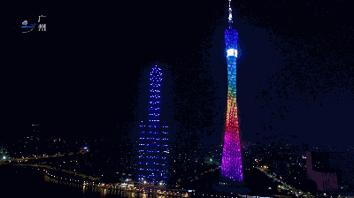 最经典的一幕出现了,这300架无人机又排成3D立体“小蛮腰”的图案,两座小蛮腰一起变幻着霓虹惊艳广州,让在场的市民游人都非常惊艳叫好。