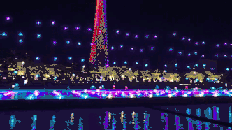 晚上八点,炫丽的灯光秀准时开始,这是以“壮阔东方潮,我爱你中国”为主题,并向改革开放40年而致敬的活动。