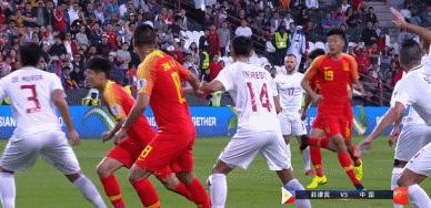 中国(4-4-2):1-颜骏凌/19-刘洋,6-冯潇霆,4-石柯,5-张琳芃/10-郑智,11-蒿俊闵,8-赵旭日,15-吴曦/7-武磊,18-郜林