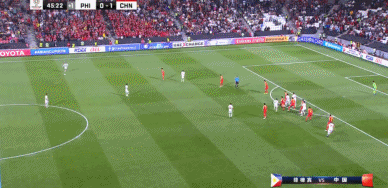 第22分钟,菲律宾打出快速反击,施特劳斯禁区前将球分给身旁的哈维尔-帕蒂尼奥,后者的打门被冯潇霆用身体挡出禁区。