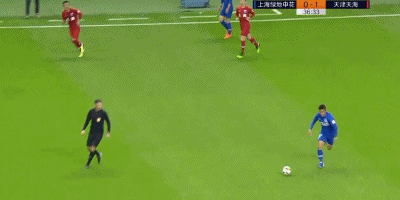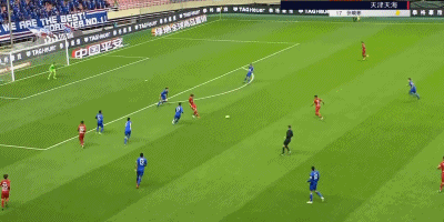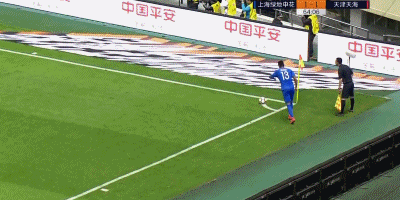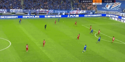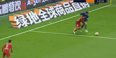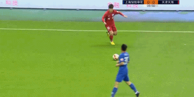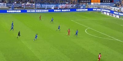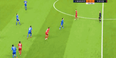 第38分钟,天海队员的解围球来到曹赟定脚下,后者觅得机会一脚远射打高。