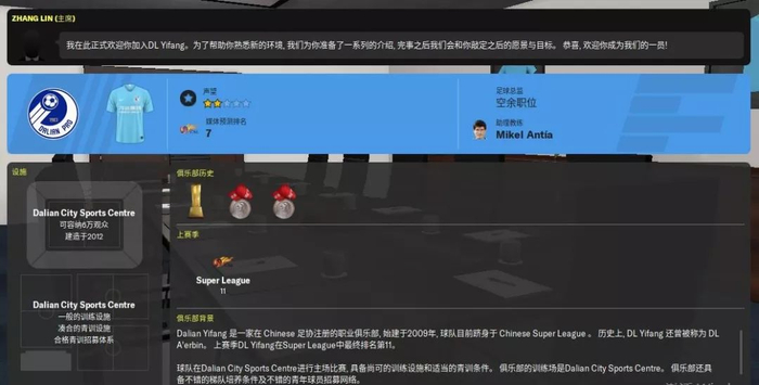 近些年FM的逐渐开始注重俱乐部工作建设,球迷的支持度和管理层的满意度也将成为经理人个人实力体现的直接考证依据。此版,开档后大连人的基础条件相对一般,但到了后期雄厚的财力支持和外援的超强实力一定会给你很多惊喜,目前在国外FM论坛上,愿意使用大连队的外国玩家越来越多。毕竟依靠外援个人能力带球队走向巅峰的感觉倍儿爽~