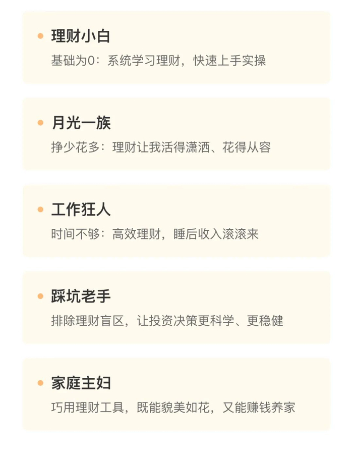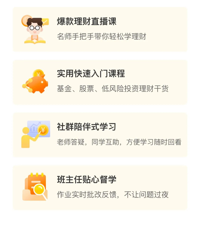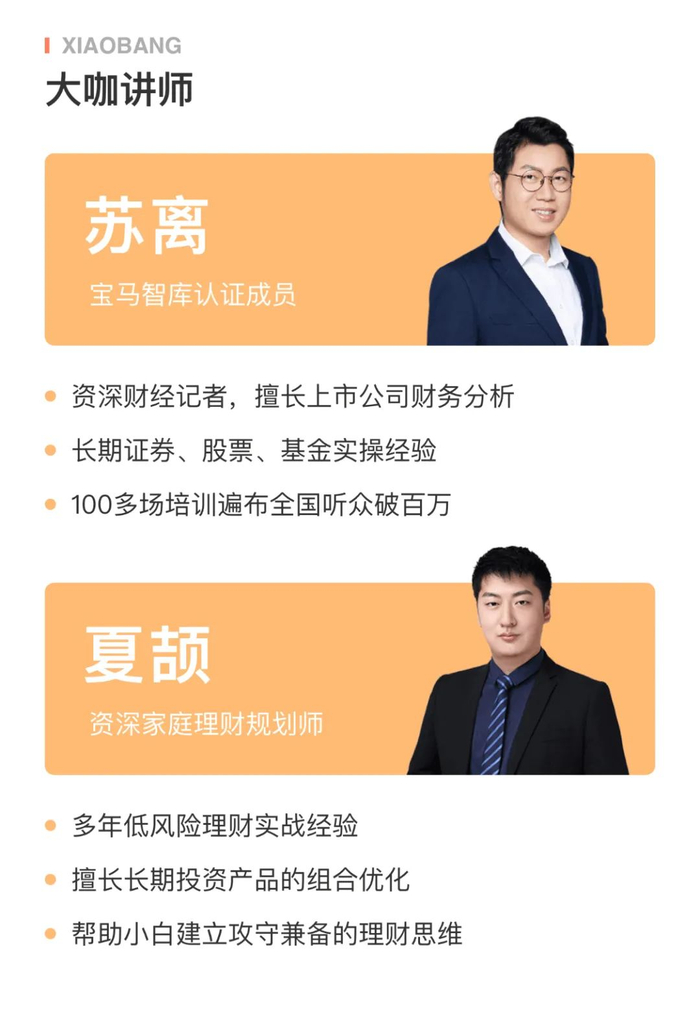 课程由小帮商学院明星讲师团队集体打造,深入浅出地为您讲解理财是什么、如何学理财、必要的理财方法、技能和工具,满满都是干货,简单好上手。