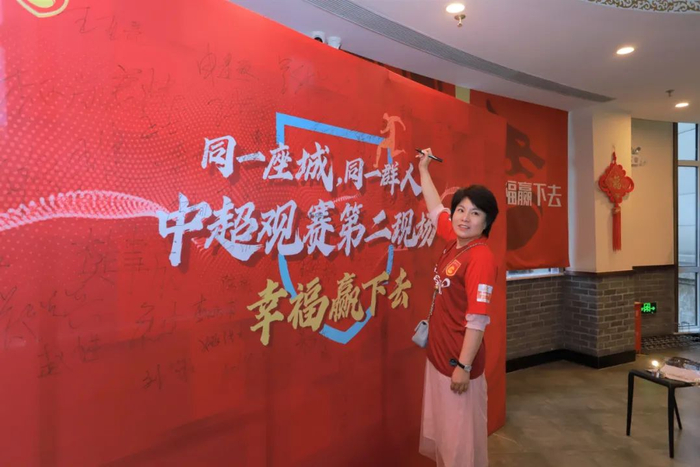 8月31日,中超第8轮,河北华夏幸福迎战石家庄永昌。为感谢幸福球迷一直以来的支持,河北华夏幸福联合合作伙伴孔雀城、百度APP共同举办“河北德比·第二现场”活动,活动自公布之日起,便获得了球迷们的热烈响应。通过官微线上招募以及球迷联盟的组织,限于场地大小,最终有200位球迷参加了本次活动。虽然是工作日,但是从下午五点开始,按捺不住兴奋的球迷们就开始陆续进场,每一位到场的球迷都在签名板上写下了自己对幸福将士的祝福,并对本场比分进行了预测。虽身未至,但同袍一心,和幸福将士并肩战斗!