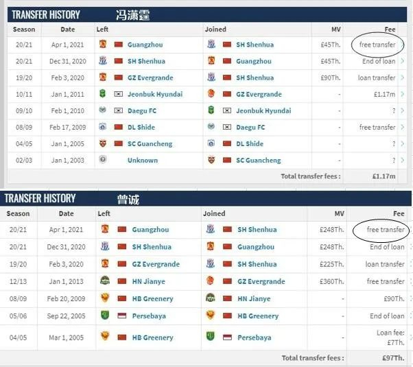 据德国《转会市场》更新数据显示,曾诚与冯潇霆,与广州队的合约已经到期,正式以自由身的身份加盟申花。