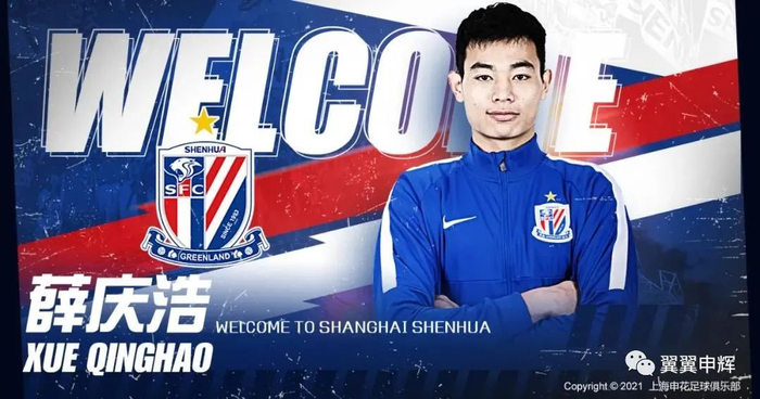 上海申花俱乐部同时官宣,经与球员本人友好协商并达成一致,球员薛庆浩加盟上海申花足球俱乐部。