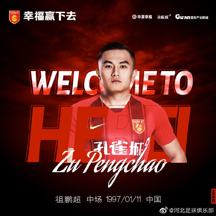 经与球员本人协商达成一致,即日起,祖鹏超正式转会加盟河北足球俱乐部。