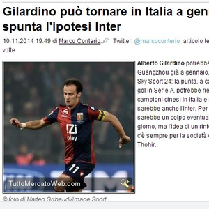 意大利足球记者、《天空体育》转会专家迪马济奥透露吉拉迪诺是国际米兰冬季转会期的引援目标之一。此外,阿森纳的坎贝尔、利物浦的博里尼都是国际米兰引援的潜在候选人。不过,吉拉迪诺还没有收到来自国际米兰的正式报价。《全市场》等意大利媒体认为国际米兰对于吉拉迪诺是一种诱惑,他可以在明年1月离开广州恒大重返意大利,尽管他和广州恒大依然有合同。值得一提的是,在加盟广州恒大之初,吉拉迪诺曾表示:“对我来说,广州恒大就像国际米兰、AC米兰、尤文图斯一样。”