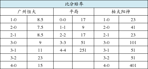 [微博]主场迎战柏太阳神。首回合客场取得3-1胜利的恒大掌握晋级主动权。赔率上看,广州恒大
