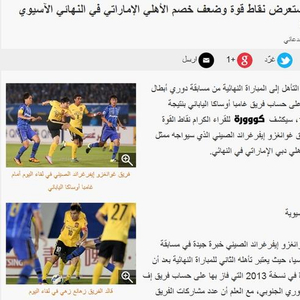 在击败大阪钢巴之后,广州恒大强势挺进亚冠决赛,并将同阿联酋的迪拜阿赫利争夺最终的桂冠。在恒大闯入决赛后,阿拉伯媒体也对恒大投来了关注的目光。阿拉伯最大的体育网站kooora.com便撰文,对恒大的强弱点进行了剖析。