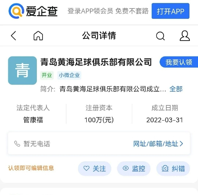 而就在在3月31日,青岛黄海足球俱乐部有限公司正式成立,注册资本为100万元。注册地位于与青岛白沙湾足球基地一路之隔的城阳区双元路10号99号楼03号网点。基本可以肯定的是,青岛黄海足球俱乐部接下来的主要任务将是青训发展。
