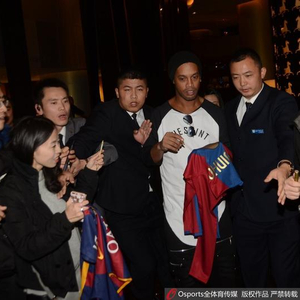 北京时间12月15日消息,巴西著名球星罗纳尔迪尼奥今日突然现身上海,据悉小罗来上海是参加某商业活动为比赛开球,而由于上海寒冷的天气,小罗在场下披上了一件上海申花队的外套。
