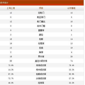 上港0-0鲁能全场技术统计