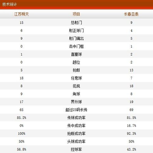 江苏舜天0-2长春亚泰全场技术统计(木之火)
