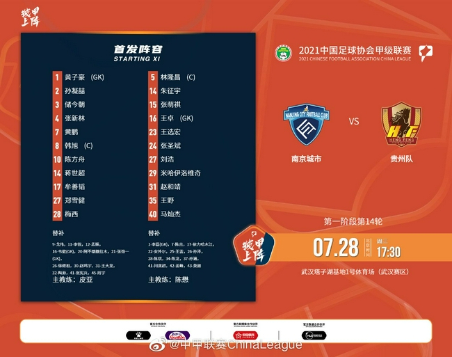 北京时间7月28日下午17点30分,2021赛季中甲联赛第14轮武汉赛区继续进行,南京城市队在塔子湖足球基地1号场迎战贵州队。上半场第9分钟,刘浩挑传禁区内,南京城市队陈方舟头球解围时不慎自摆乌龙。下半场南京城市队加强攻势,可惜未能扳平比分。最终经过90分钟较量后,南京城市队0比1惜败贵州队。