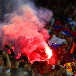 在1-2输给斯洛伐克的比赛中,格卢沙科夫为俄罗斯打进了缩小差距的一粒进球。这时一名俄罗斯球迷在看台上点燃了一支红色烟火,而在英俄球迷事件后,欧足联已经禁止球迷将烟火等燃烧物带进球场。