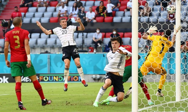 北京时间6月20日00:00(德国当地时间19日18:00),2020欧洲杯F组第2轮一场比赛在安联球场展开争夺,德国4比2取胜葡萄牙,哈弗茨进球,戈森斯传射,迪亚斯和格雷罗摆乌龙。C罗为葡萄牙传射,若塔进球。[欧洲杯盈利秘籍都在这!][下载APP盈利翻倍!]
