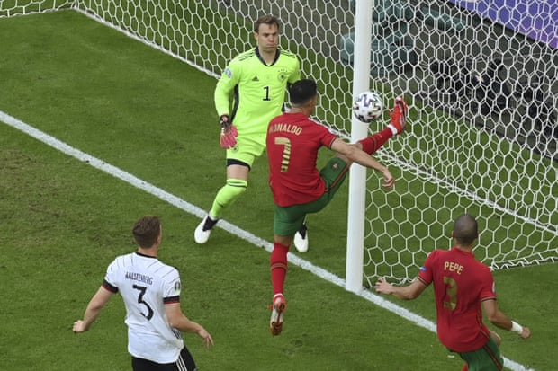 葡萄牙第67分钟扳回一城,穆蒂尼奥左路任意球传中,C罗小禁区右侧底线附近凌空垫传门前,若塔门线前凌空扫射入网,2-4。葡萄牙成为欧洲杯历史上首支单场丢掉4球的卫冕冠军。
