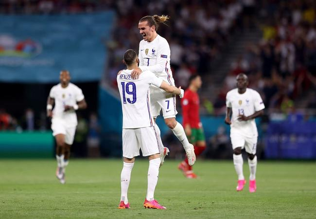 上半时补时第2分钟,博格巴挑传禁区左侧边缘,姆巴佩在塞梅多防守下倒地,拉奥斯再度吹罚点球,葡萄牙队员抗议,VAR维持原判,本泽马操刀推进左上角,1比1。