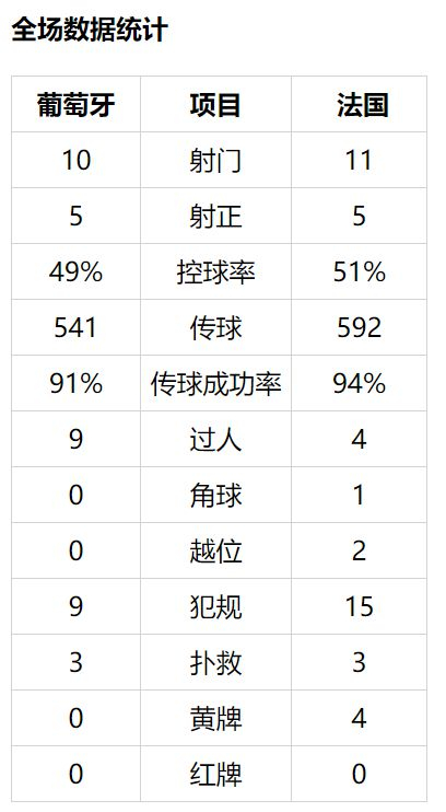 法国赛前已经出线,此役取胜即可锁定头名;葡萄牙不败即可晋级。B费意外无缘首发,桑谢斯顶替出场。老将穆蒂尼奥取代威廉-卡瓦略,第134次代表国家队出场。德尚则轮换3人,卢卡斯回归取代迪涅,托利索和孔德出场,顶替拉比奥和帕瓦尔。
