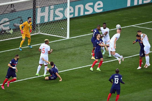 格列兹曼开出角球,瓦拉内前点小禁区边缘冲顶高出。瑞士第15分钟取得领先,祖贝尔禁区左侧边缘传中,朗格莱盯人不紧,塞费罗维奇10码处顶入左下角。法国难破对手的铁桶阵,拉比奥特远射稍稍偏出。