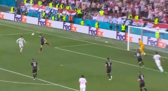 第二次拿到球的加亚,再次抡起一脚远射,虽然被门将扑出了,但此时,他已经让克罗地亚的整体防守重心产生了偏移。